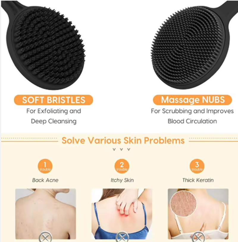Y99 Long Handle Shower Brush Back Scrub Body Exfoliating Shower Scrubber Shower Bathtub Back Scrub Silicone Body Scrub